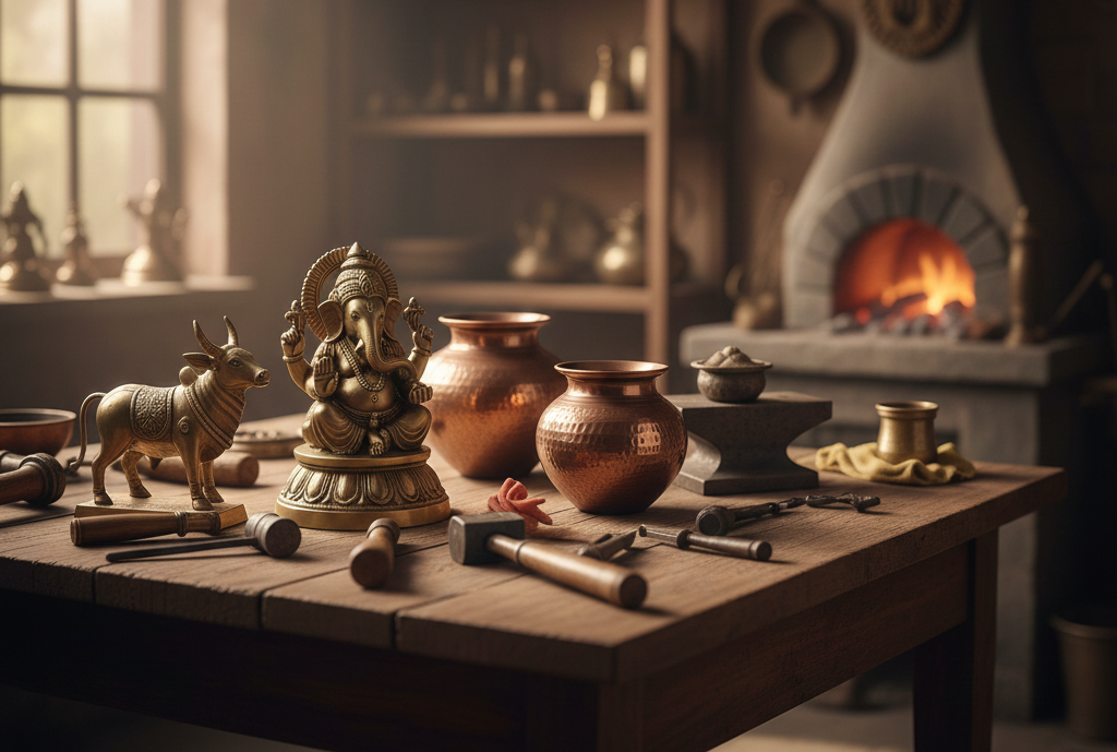 Our journey began with a simple vision — to bring the timeless charm of brass, kansa, and antique metals into modern living spaces. Each artifact is handcrafted by skilled Indian artisans, preserving cultural heritage while adding elegance to your homes, hotels, and workplaces.